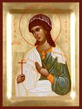 Украси́вши ду́шу твою́ смире́нием и кро́тостию,/ уста́ же испове́данием ве́ры освяти́вши,/ Красне́йшему добро́тою па́че сыно́в челове́ческих,/ в Небе́снем Ца́рствии предста́ла еси́./ Ему́же моли́ся о нас, му́ченице свята́я,/ да ми́лостив нам бу́дет// и спасе́т ду́ши на́ша.